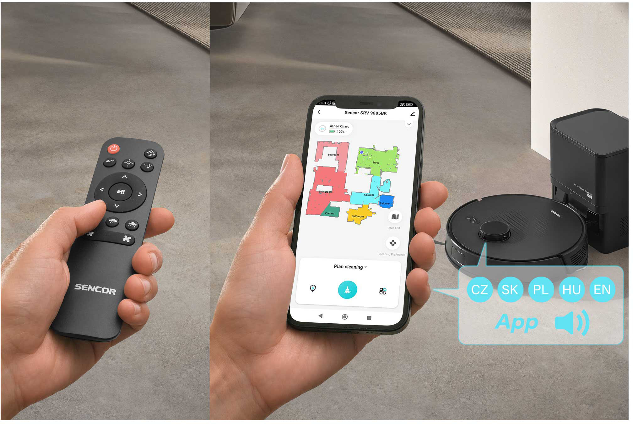جاروبرقی رباتیک هوشمند Sencor SRV 9085BK به تمیز کردن کفهای سخت و فرشها میپردازد. این جاروبرقی به طور همزمان عملکرد تی کشیدن و جاروبرقی کشیدن را ارائه میدهد. نتایج عالی توسط یک موتور قدرتمند با نیروی مکش ۳۰۰۰ پاسکال تضمین میشود. به لطف باتری لیتیوم-یونی ۲۶۰۰ میلیآمپر ساعتی، میتواند با یک بار شارژ تا ۱۳۰ دقیقه کار کند. این دستگاه مجهز به عملکرد تخلیه خودکار مخزن گرد و غبار به طور مستقیم در یک کیسه ۲ لیتری است که در یک ایستگاه جمعآوری گرد و غبار خودکار جمع و جور قرار میگیرد. ناوبری لیزری Lidar جهتگیری کامل در فضا را تضمین میکند. کنترل راحت از طریق ریموت کنترل یا برنامه موبایل Sencor home به طور مستقیم از طریق تلفن امکانپذیر است. با بلوتوث، جفت شدن بسیار آسان است.