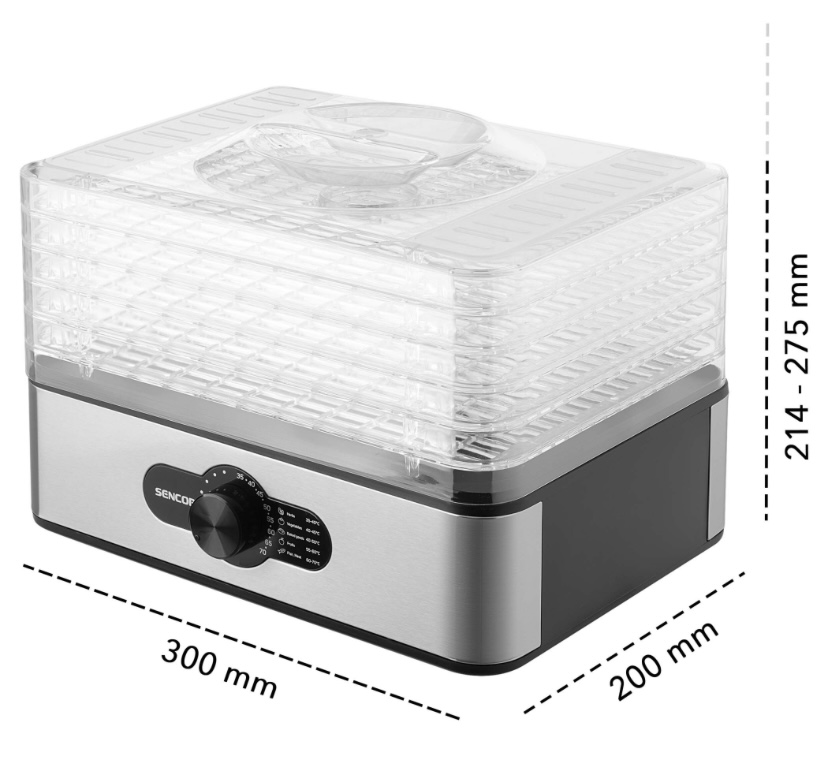 ابعاد (عرض x عمق x ارتفاع) 299 x 216 x 214 / 275 میلیمتر