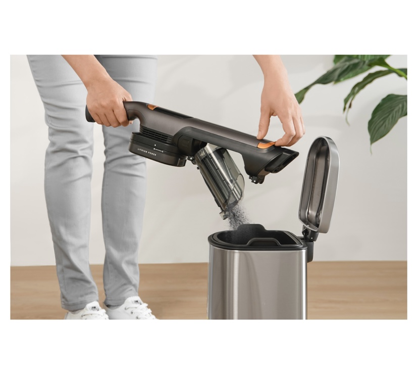 مخزن گرد و غبار به سادگی با یک حرکت دست باز میشود. این امر تخلیه سریع و بهداشتی گرد و غبار را فراهم میکند.