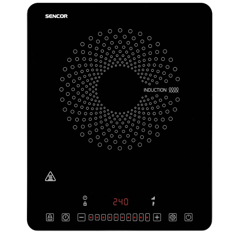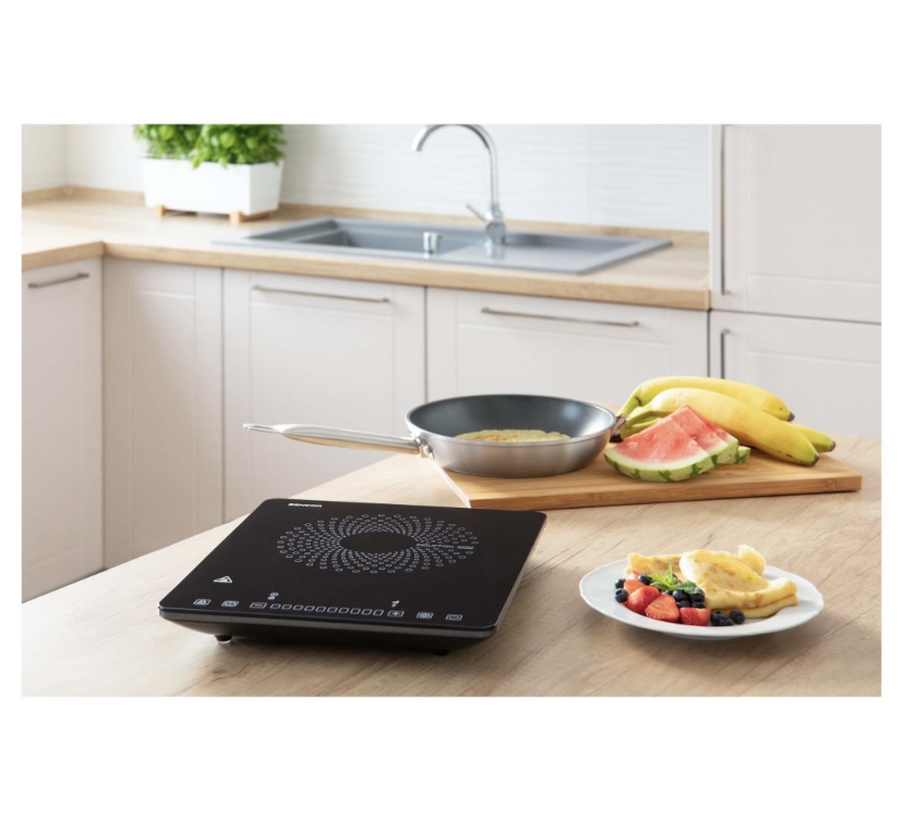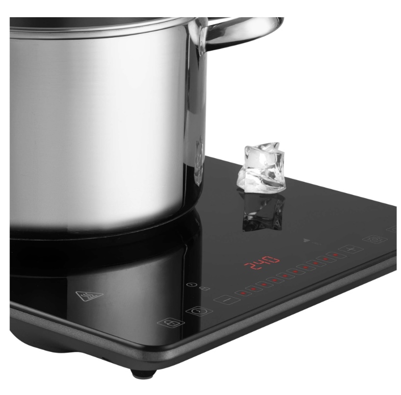 تشخیص خودکار ظرف پخت و خاموش شدن خودکار. وقتی ظرف از روی صفحه داغ برداشته میشود یا وقتی از ظرف نامناسب برای پخت القایی استفاده میشود، اجاق گاز خاموش میشود. با قرار دادن یک آهنربا روی پایه آن، مناسب بودن آن را تأیید کنید.