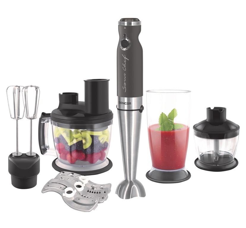 از ویژگیهای متنوع من نهایت لذت را ببرید و در زمان و فضای آشپزخانه صرفهجویی کنید! من خودم را به عنوان همزن دستی Sencor SHB 5501CH-EUE3 معرفی میکنم و نه عملکرد/اتصال را در یک دستگاه ارائه میدهم. توان خروجی ۱۲۰۰ وات بسیار قابل احترام است و نتایج عالی را تضمین میکند، چه مخلوط کردن، هم زدن، خرد کردن، رنده کردن یا خرد کردن.